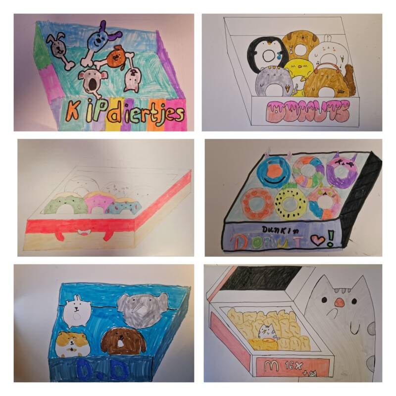 Tekenles 'teken een 3D doos met donuts' (of iets anders moois)!