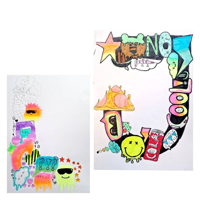 Teken de eerste letter van je naam in graffiti-stijl! Ongelofelijk knap gedaan Joppe en Loïs!